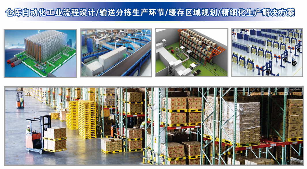 仓库自动化工业流程设计、输送分拣、生产环节缓存区域规划、精细化生产解决方案